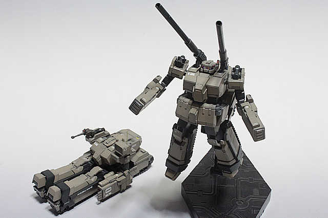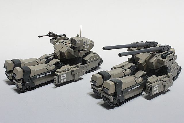 [Mr] ネービーブルーをベースに 白、クリアーグリーン少量 □: ガンダムカラーMSホワイト ■:キャタピラ部分: [Mr]グレーバイオレット キャノン部:旧ガンダムカラー グレー(24